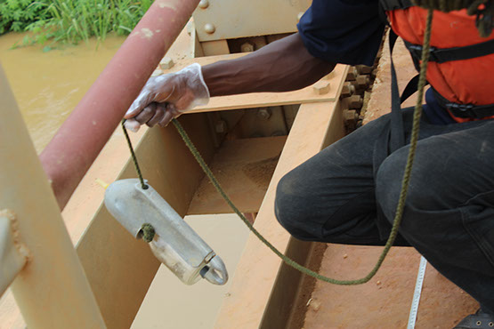 Monthly sampling of the Pra basin has began with the research team . Water and sediment are sampled from seven (7) substation in the Pra basin namely; Daboase, Domposo, Assin Praso, Dunkwaw, Anwia Nkwanta, Akim Oda and Konongo. At each substation, the flow of the the river is measured as well as the the depth of river.